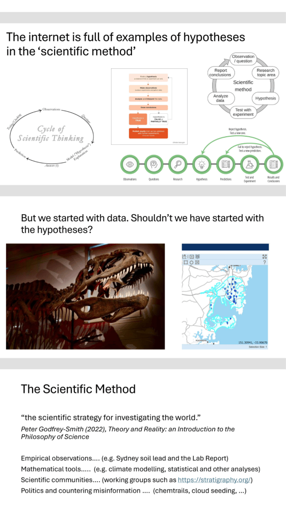 Before all of this, the role of hypothesis testing in science was discussed, how the scientific method might apply to Earth and environmental science datasets, and how philosophers of science might view how science is actually done.
